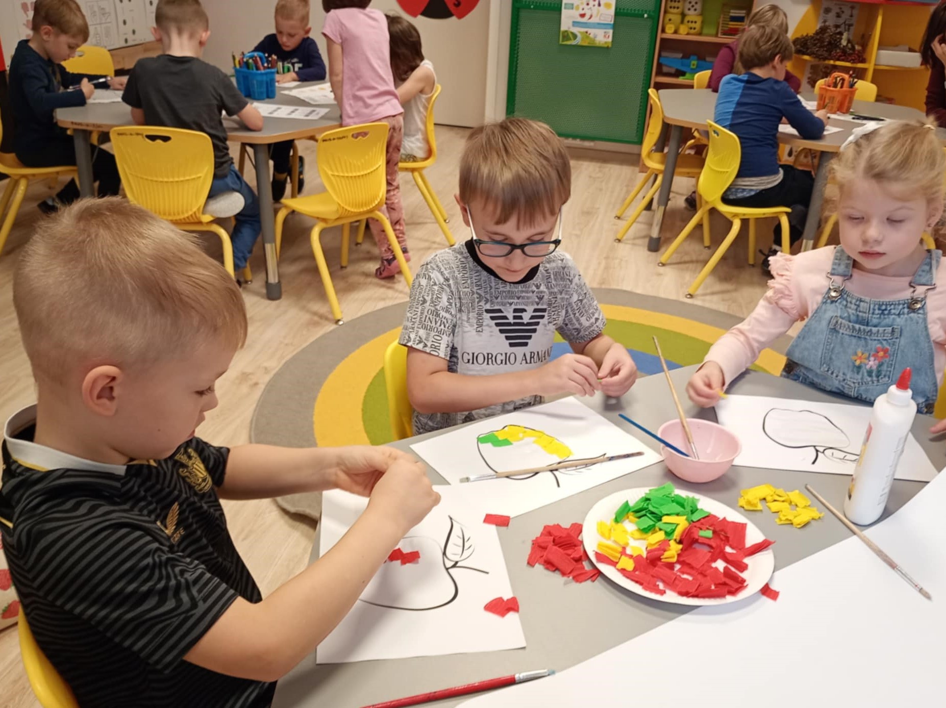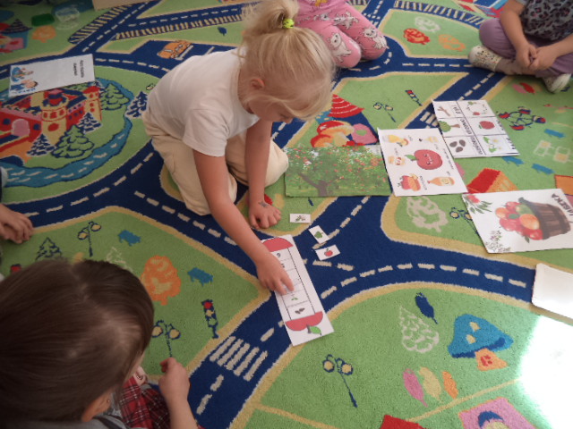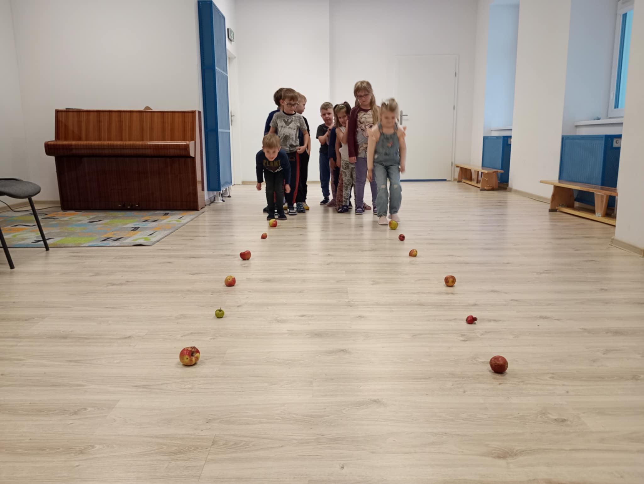 W naszym przedszkolu w grupach Sówek, Motylków i Biedronek odbyły się zajęcia, których motywem przewodnim były jabłka. Zajęcia poprowadziła Pani Paulina. Dzieci wysłuchały opowiadania "Co rośnie w sadzie", rozmawiały o budowie jabłka, cyklu jego rozwoju oraz o tym jakie przetwory można z jabłek przygotować. Były też zabawy ruchowe - slalom oraz przenoszenie jabłek na tacy. Na koniec dzieci wykonały prace plastyczne związane z tematyką jabłek.