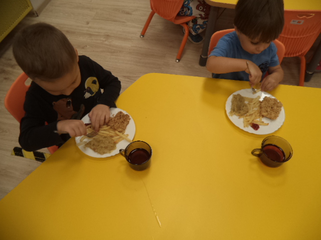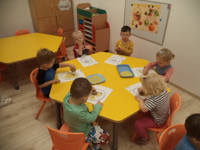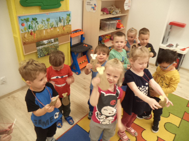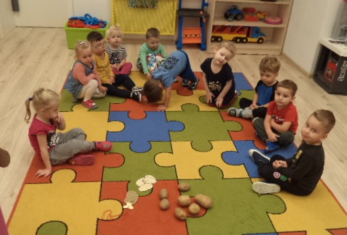 W dniu 17.10.2025 w grupie Maluchów mieliśmy Dzień Ziemniaka. Dzieci wchodziły przez bramę do Krainy Ziemniaka. Potem słuchały opowiadania o królu, który odkrył, że ziemniaki są smaczne kiedy się je ugotuje lub upiecze. Były zabawy przy piosence "Ziemniak". Dzieci ćwiczyły swoje umiejętności ruchowe w wyścigach grupowych, noszeniu na łyżce ziemniaka i rzutach do celu ziemniakiem. Wykonały prace plastyczne stemplując prawdziwymi ziemniakami obrazek. Na obiad zjedliśmy pyszne pieczone frytki. Każdy dostał medal w kształcie ziemniaka, który zabrał do domu.