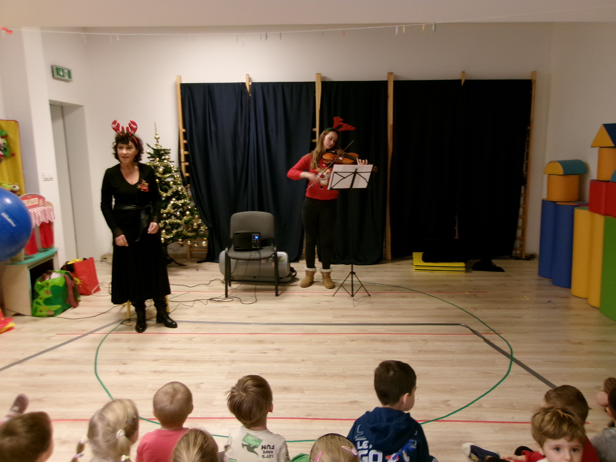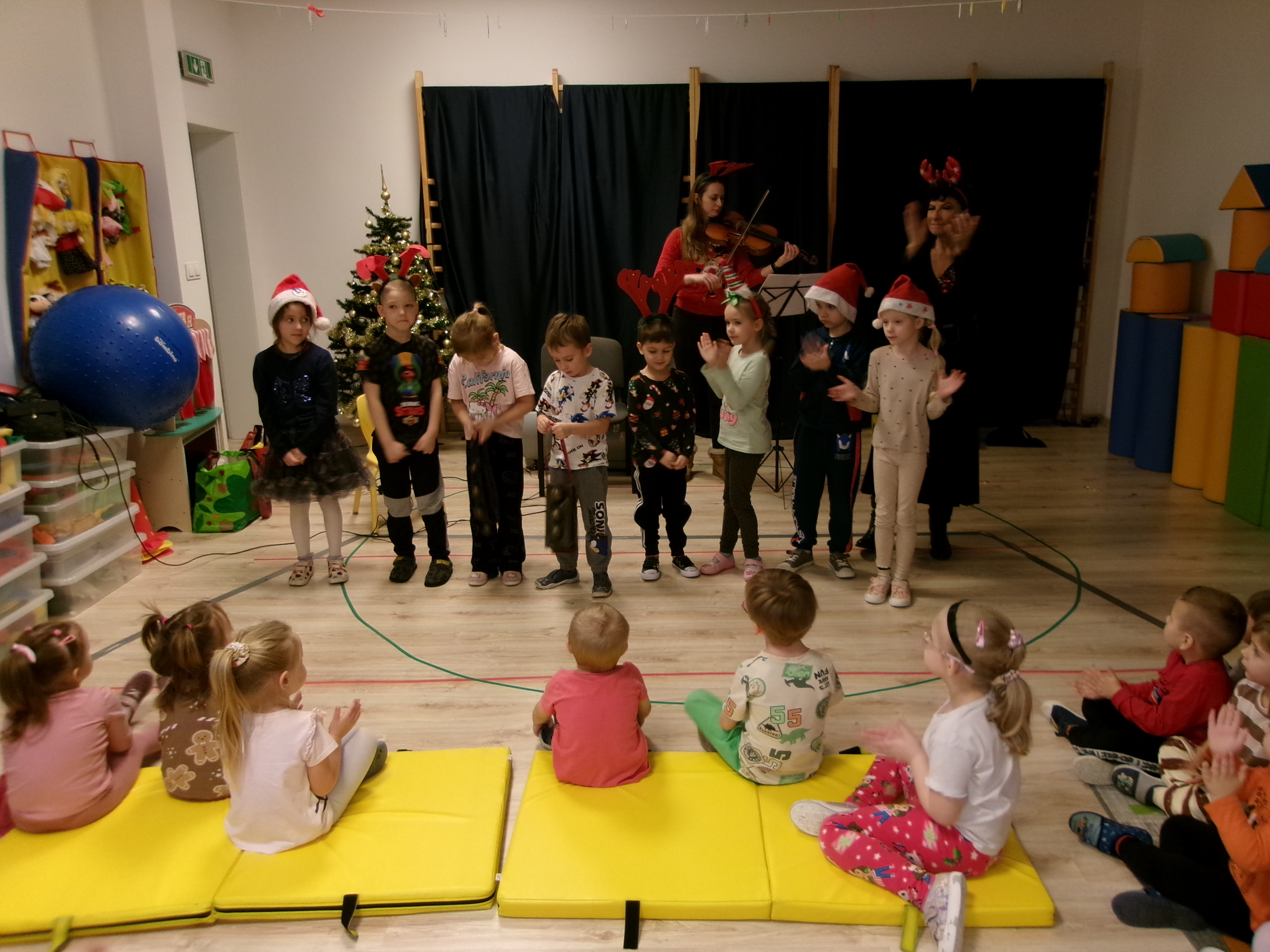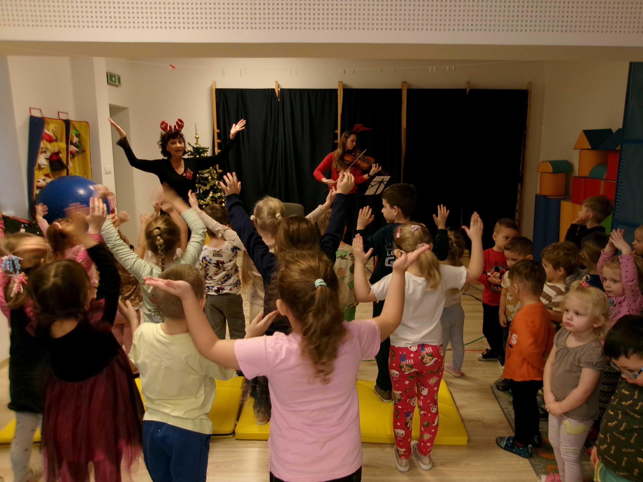 W dniu 15.12.25 r. w naszym przedszkolu odbyła się kolejna audycja muzyczna, tym razem w świątecznej odsłonie. Dzieci poznały kolejny instrument muzyczny - altówkę. Dzieci z ogromnym entuzjazmem śpiewały znane kolędy i tańczyły do pięknych świątecznych piosenek, wsłuchując się w magiczne dźwięki muzyki. Nie zabrakło również wspólnego wykonania "Jingle Bells", które sprawiło dzieciom ogromną radość. Radosne melodie, wspólne zabawy oraz świąteczne rytmy wprowadziły wszystkich w wyjątkowy, ciepły nastrój. Audycja była pełna uśmiechów, ruchu i muzycznej radości, a dzieci mogły aktywnie uczestniczyć w tworzeniu prawdziwie świątecznej atmosfery.
