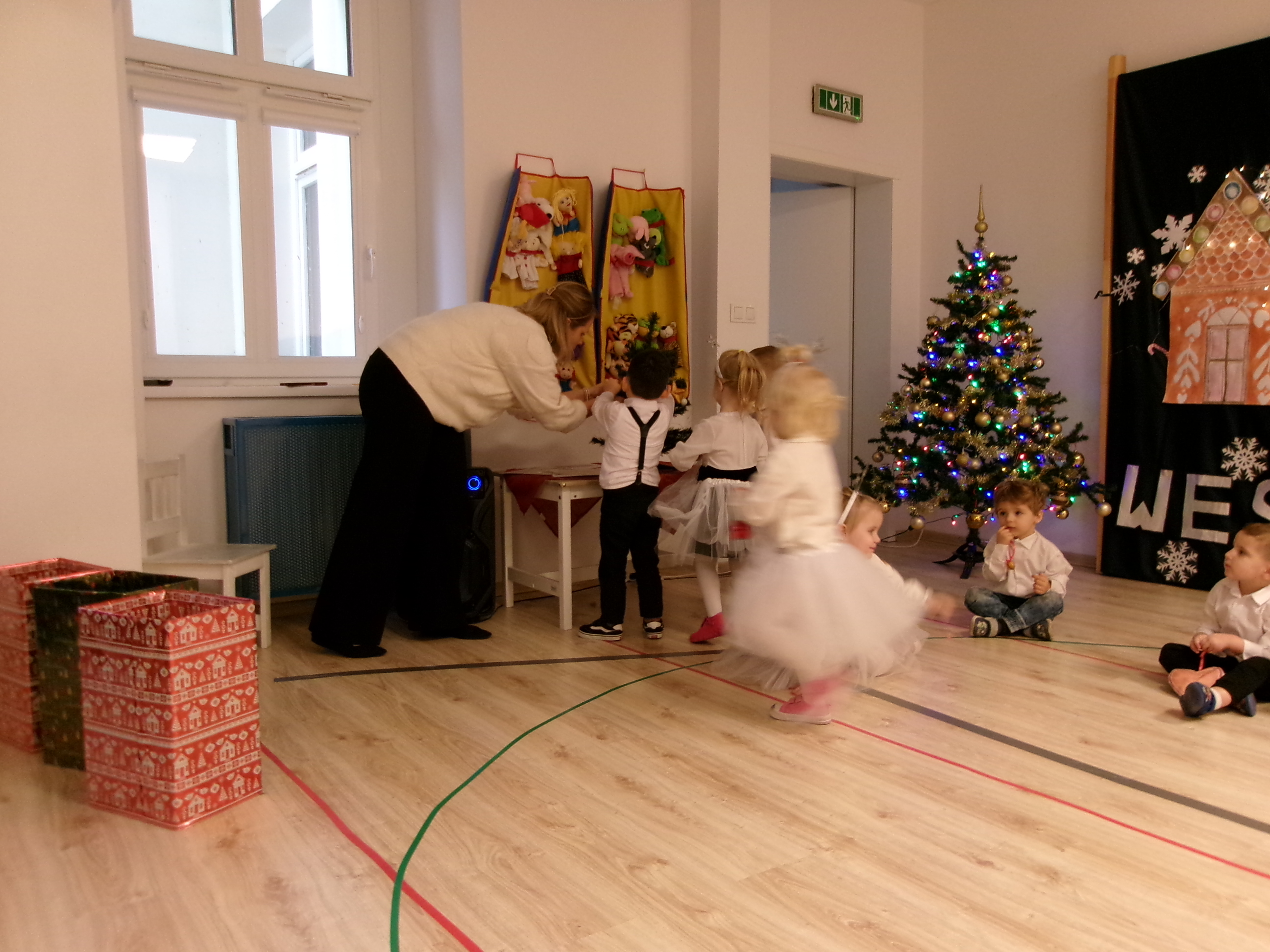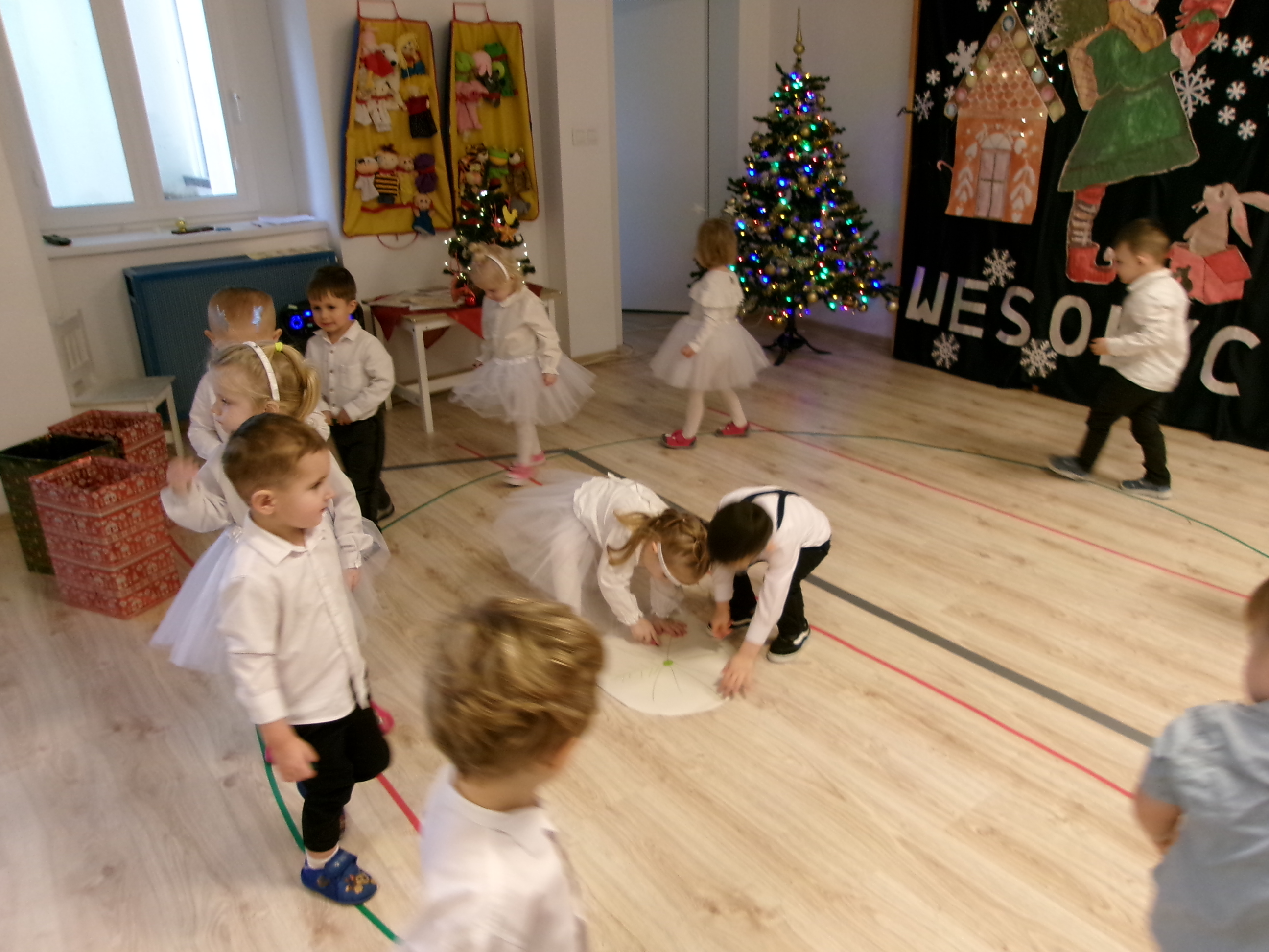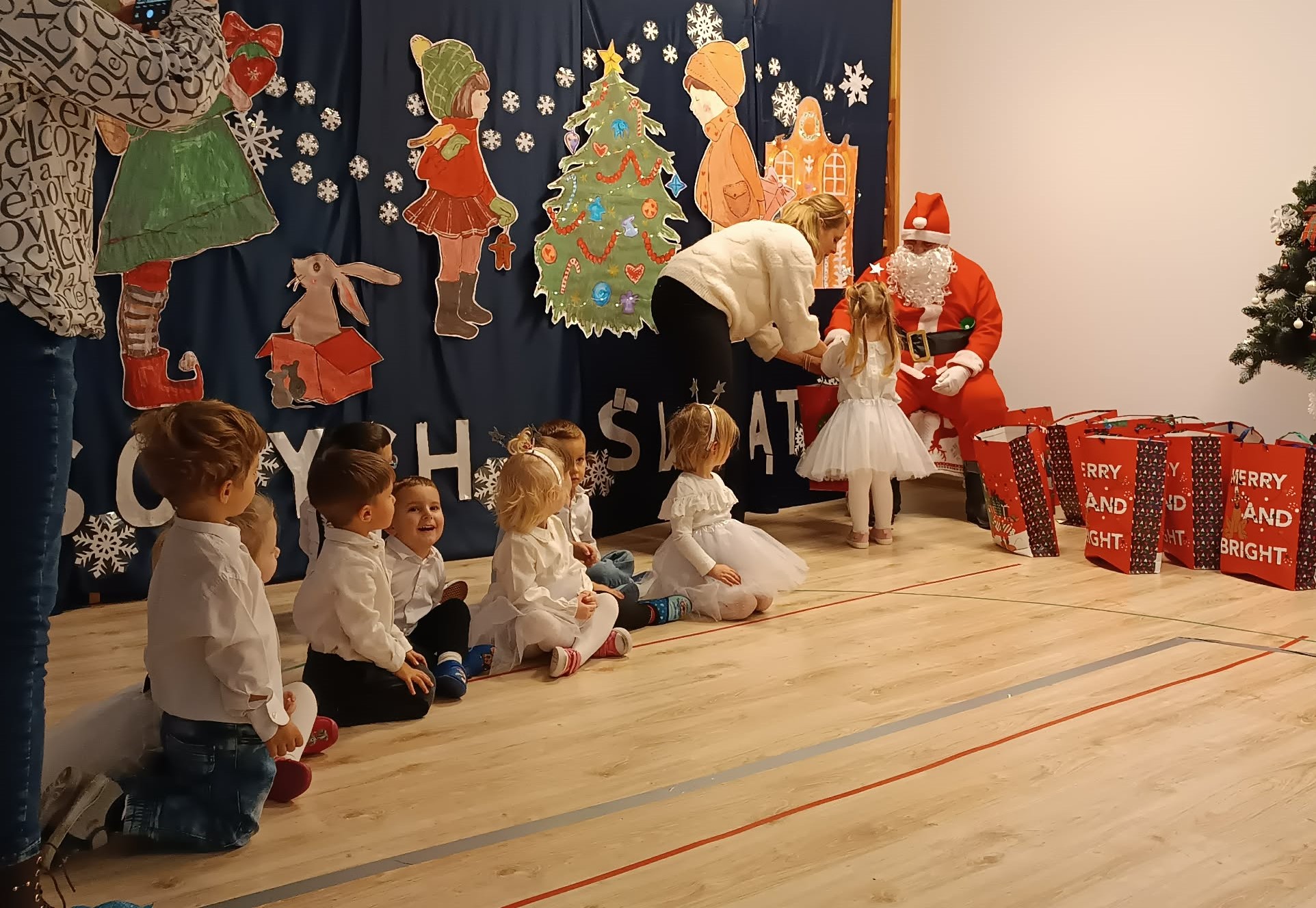 18 grudnia w grupie Pszczółek odbyło się świąteczne spotkanie z udziałem dzieci i ich rodziców. Maluchy zaprezentowały krótki występ artystyczny - śpiewały świąteczne piosenki oraz tańczyły, wprowadzając wszystkich w świąteczny nastrój. Największą niespodzianką była wizyta Mikołaja, który wręczył dzieciom prezenty. Na zakończenie spotkania na dzieci i rodziców czekał słodki poczęstunek oraz wspólnie spędzony czas w miłej, świątecznej atmosferze.